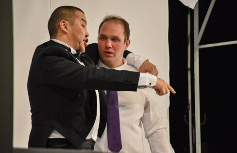 "Очень хороший спектакль, интересная комедия со смыслом и без пошлости, без грубых шуток. Зрелищно, свои декорации, эффектно и красиво. И очень хорошая актерская работа. Московский театр Et Cetera – это определенный уровень, было очень полезно посмотреть на работу коллег", – сказал он.