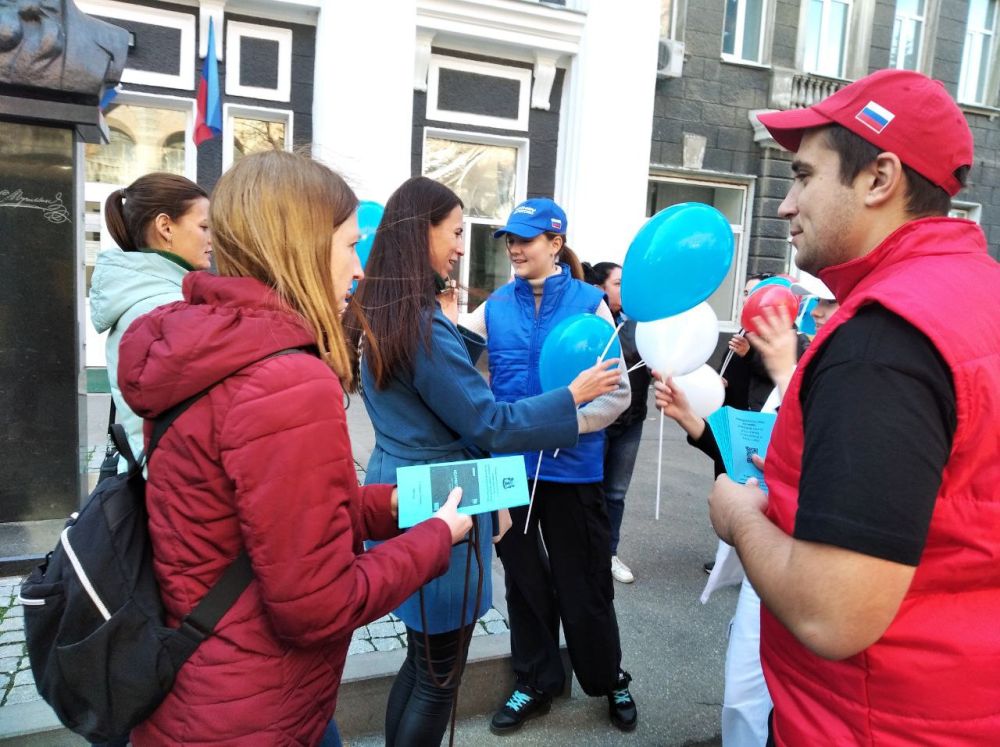 «Все участники акции получили информационные листовки и шарики белого, синего и красного цветов, символизирующие единство народов России», – говорится в сообщении.