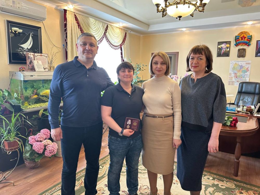 Указом Главы Луганской Народной Республики, за самоотверженый труд, высокий профессионализм, проявленное милосердие, а также за оказание медицинской помощи онкологическим больным Луганской Народной Ре