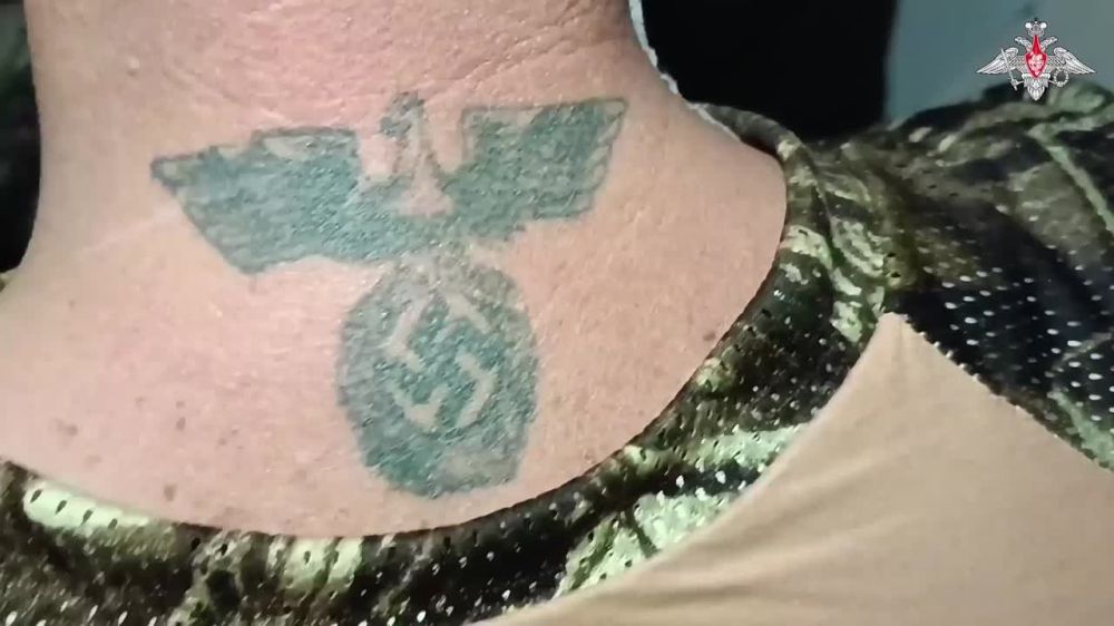 Украинский пленный с нацистской татуировкой призвал сослуживцев «складывать оружие и уходить домой» На тыльной части шеи военнослужащего ВСУ Виталия Гурина татуировка в виде орла с нацистской свастико