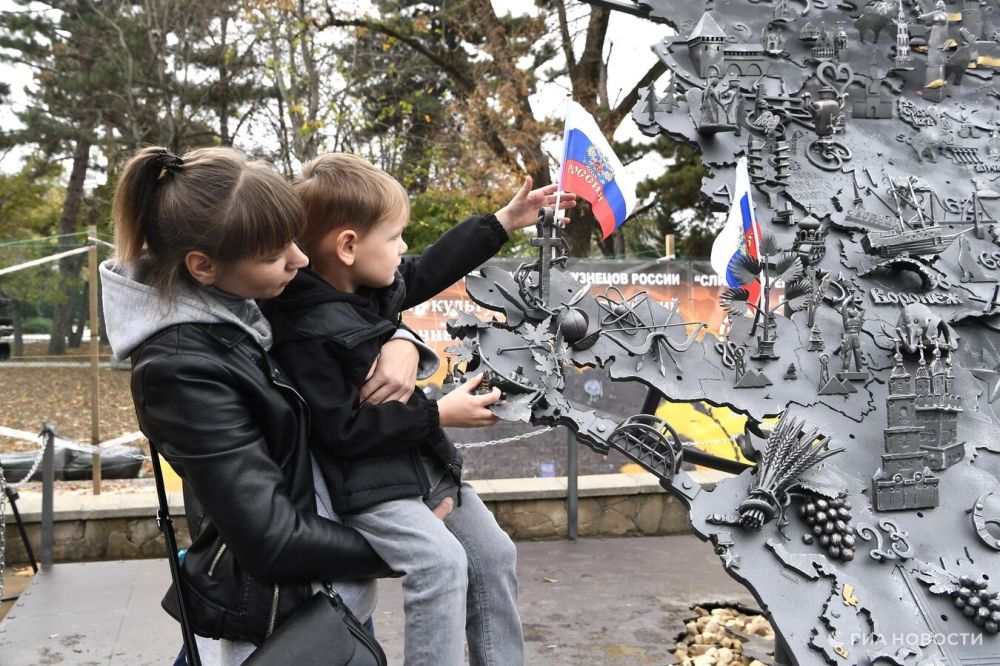 «"Глубоко символично, что эта кованая карта величия России дополняется новыми регионами, которые вошли в состав России, именно в День народного единства", - сказал на церемонии открытия первый вице-спикер парламента Крыма Ефим Фикс.