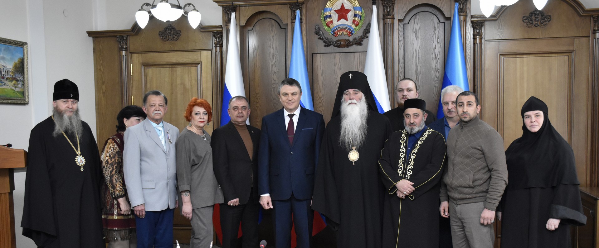 Решение о создании в регионе Совета по межнациональным и межконфессиональным отношениям при Главе ЛНР приняли участники рабочего совещания по вопросам взаимодействия органов власти с религиозными и национальными организациями республики, которое провел Леонид Пасечник. В совещании участвовали руководители православных епархий, Духовного управления мусульман, а также представители украинского, белорусского, татарского, армянского и азербайджанского национально-культурных обществ.