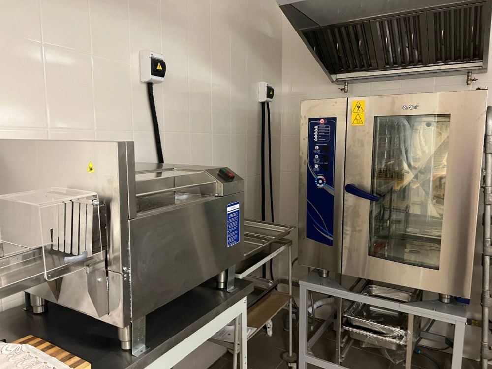 В школе отремонтировали зону приёма пищи, а также установили и ввели в эксплуатацию новое оборудование для пищеблоков, закупленное Минпромторгом России.