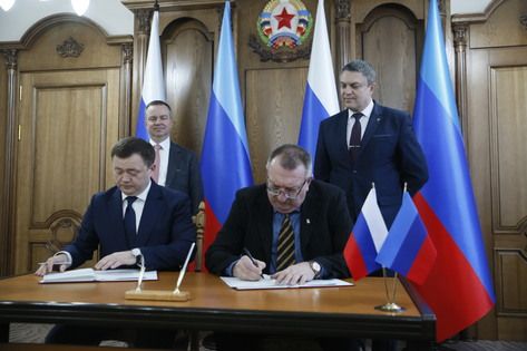 Со стороны ЛНР договор купли-продажи подписал временно исполняющий обязанности председателя Фонда государственного имущества Республики Валерий Кравченко. Церемония состоялась в присутствии врио главы ЛНР Леонида Пасечника и заместителя министра финансов РФ Алексея Моисеева.