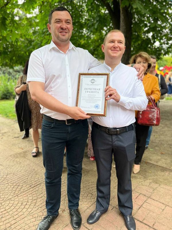 Также он вручил Почетную грамоту трудовому коллективу ООО «Стройцентр» в лице операционного директора Сергея Пугинского.