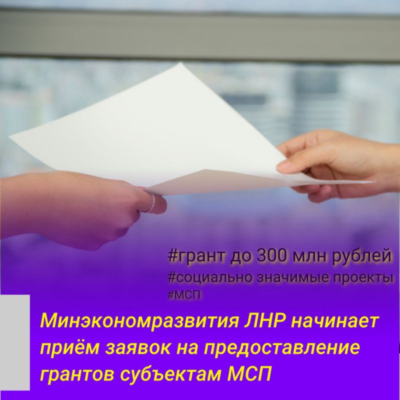 Минэконом ЛНР информирует, что с 27 ноября стартует кампания по подачи заявок на предоставления грантов в форме субсидий из бюджета республики субъектам малого и среднего предпринимательства, осуществляющим социально значимые виды деятельности.