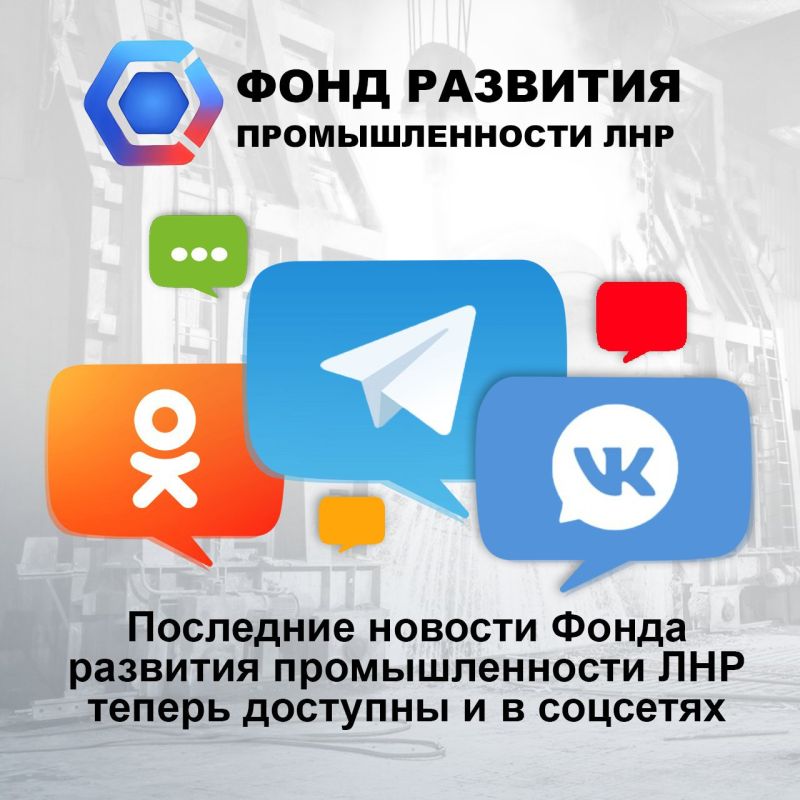 Теперь Фонд развития промышленности ЛНР в соцсетяхУ регионального Фонда развития промышленности появились странички в популярных социальных сетях ВКонтакте, «Одноклассники» и Telegram, сообщили в ФРП