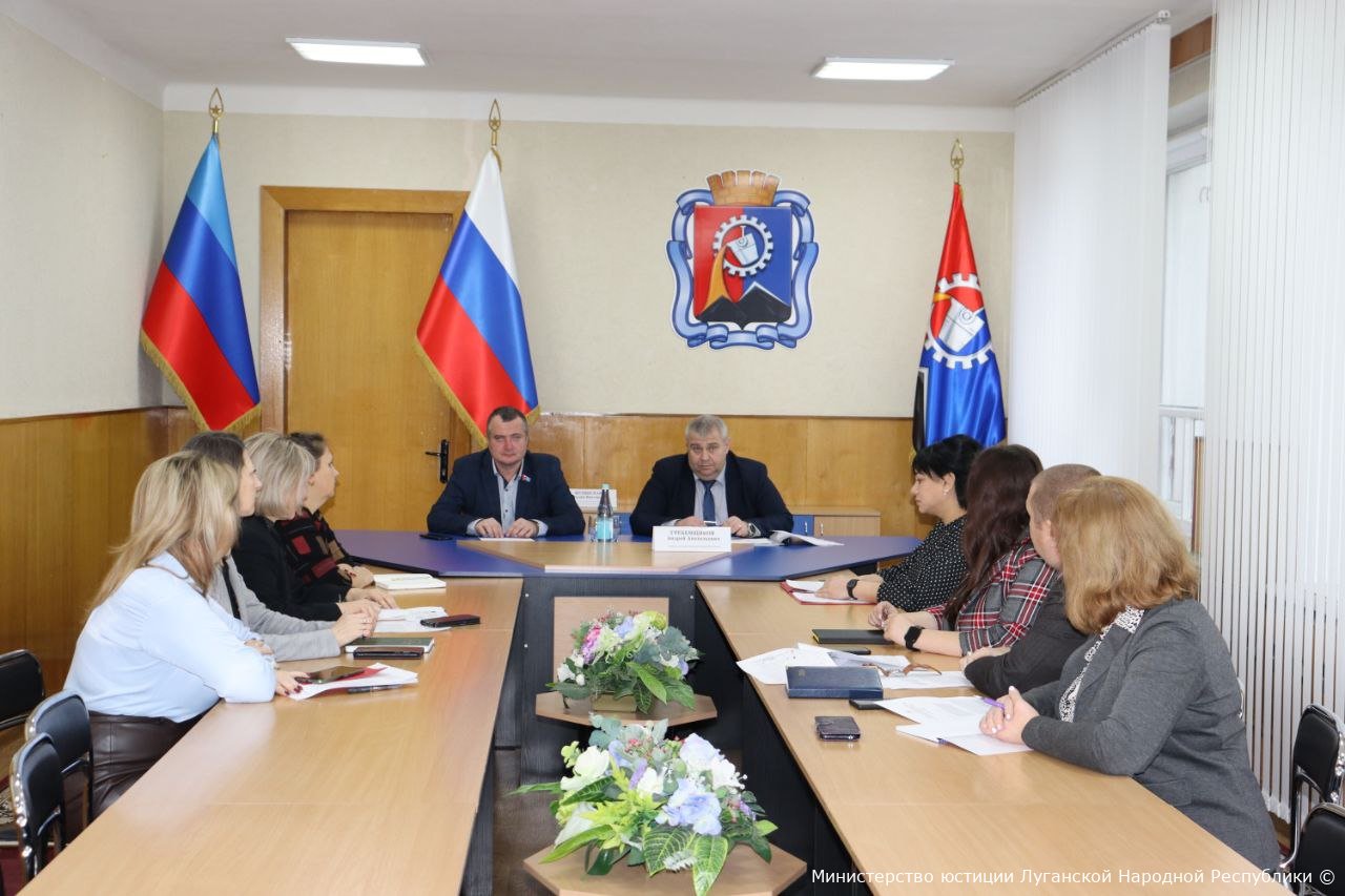 На встрече присутствовали врип Главы муниципального образования городской округ город Стаханов Наталия Жулинская, председатель Совета городского округа город Стаханов Юрий Нестеренко, представители Администрации г. Стаханова и начальник отдела государственной регистрации, правовой экспертизы НПА и ведения муниципального регистра Минюста ЛНР Юлия Хайлова.