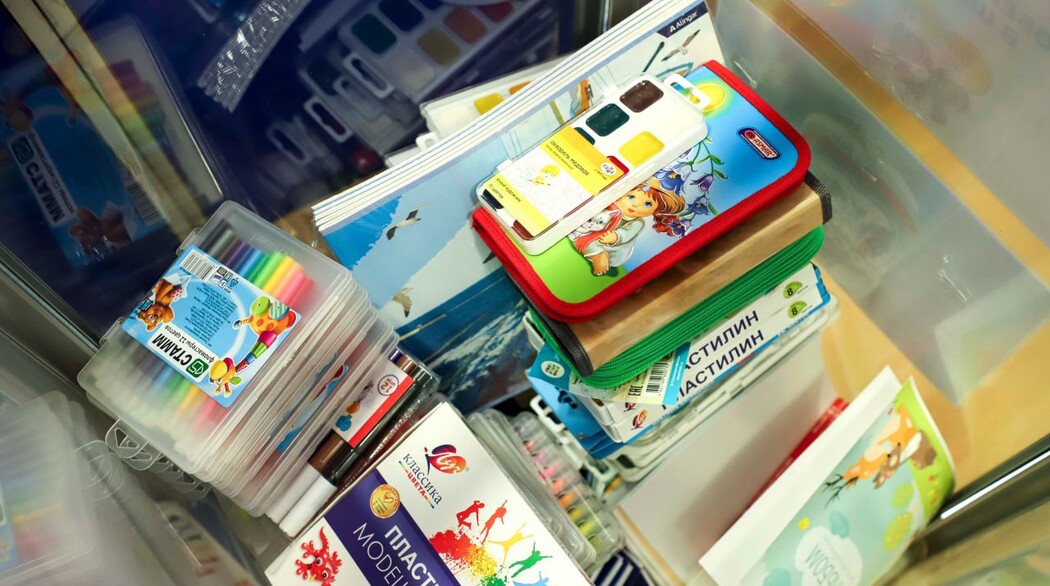 Наборы для школьников будут включать тетради, альбомы для рисования, фломастеры, карандаши и другие необходимые детям канцелярские товары.