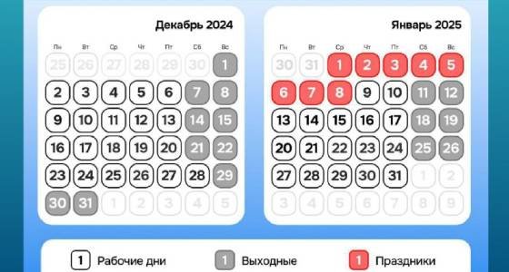 В ведомстве отметили, что перед новогодними праздниками будет шестидневная рабочая неделя: с 23 по 28 декабря.