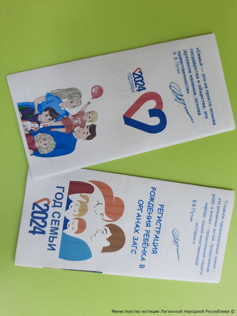 Реализуя мероприятия, направленные на сохранение традиционных семейных ценностей, Троицкий районный отдел ЗАГС департамента ЗАГС Минюста ЛНР в рамках Года семьи 2024 разработал брошюры «Регистрация рождения ребенка в органах ЗАГС» и «Порядок заключения брака». Данные брошюры помогут ответить на вопросы кто может зарегистрировать рождение ребенка, о порядке внесения сведений о родителях в запись акта о рождении. Также в брошюрах разъяснены порядок, основания и условия заключения брака.