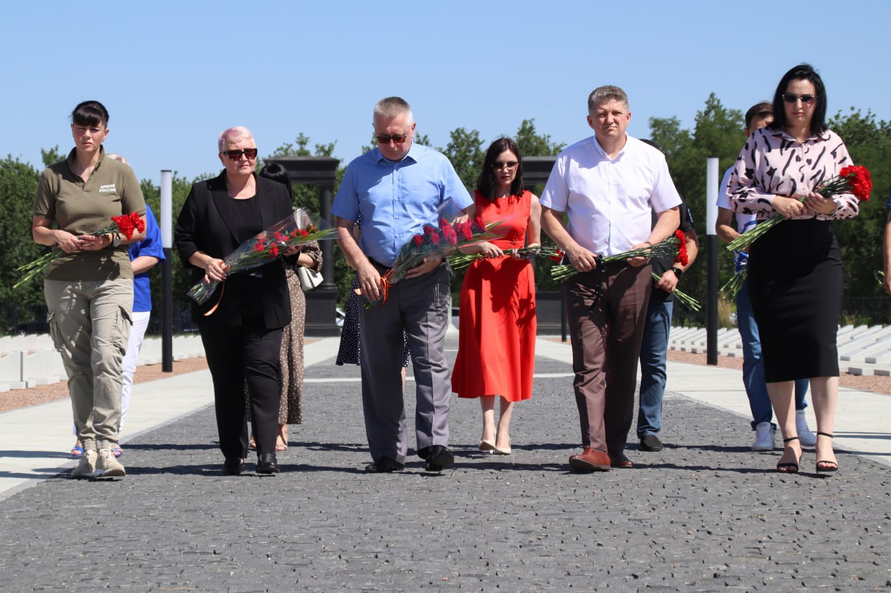 Временно исполняющий обязанности Руководителя Администрации Главы ЛНР Олег Черноусов, заместитель Руководителя Администрации Главы ЛНР Наталья Шкода, временно исполняющий полномочия Главы города Луганска Яна Пащенко вместе с представителями общественных организаций республики возложили цветы к мемориалу «Незаживающая рана Донбасса».
