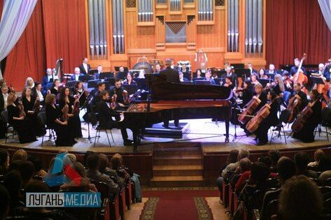 Московские музыканты - дирижер, народный артист РФ Валерий Борисов и лауреат международных конкурсов пианист Филипп Копачевский - выступили в столице ЛНР вместе c академическим симфоническим оркестром Луганской академической филармонии.