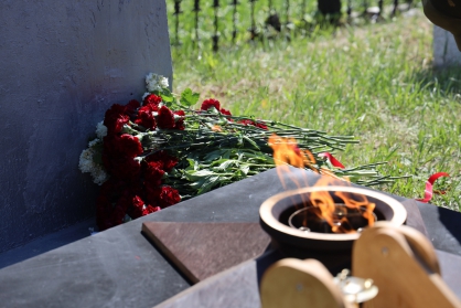 Участники акции почтили минутой молчания память погибших во время Великой Отечественной, а затем возложили цветы к мемориалу.