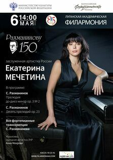 "Всемирно известная пианистка, заслуженная артистка России Екатерина Мечетина представит на сцене Луганской академической филармонии концертную программу, приуроченную к 150-летию со дня рождения Сергея Рахманинова, в рамках проекта "Всероссийские филармонические сезоны" Министерства культуры РФ и Московской государственной академической филармонии", - говорится в сообщении.