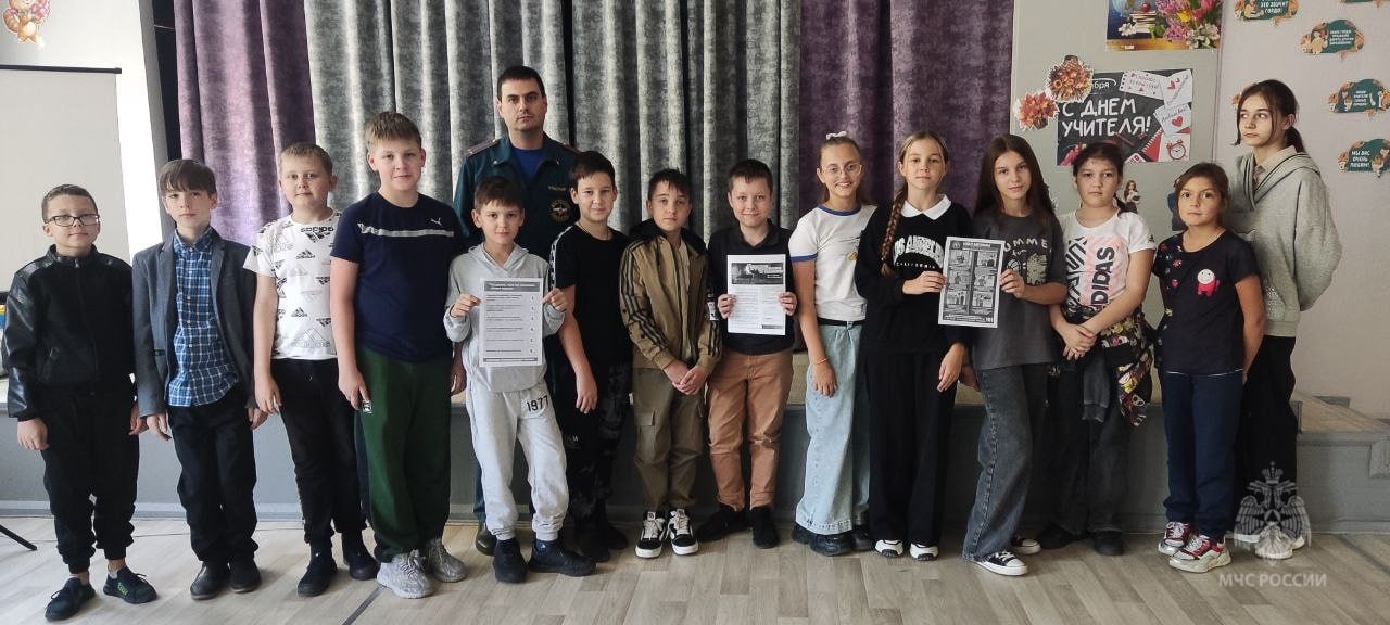 В ходе лекции ребята задавали интересующие их вопросы и получили на них квалифицированные ответы. Также детям были розданы тематические листовки о правилах поведения в осенний период.