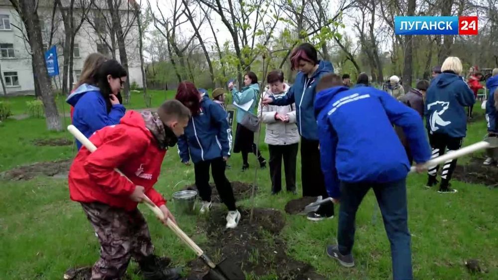Акция «Сад героев» в честь ветеранов Великой Отечественной войны и павших героев спецоперации состоялась в Луганске в ра