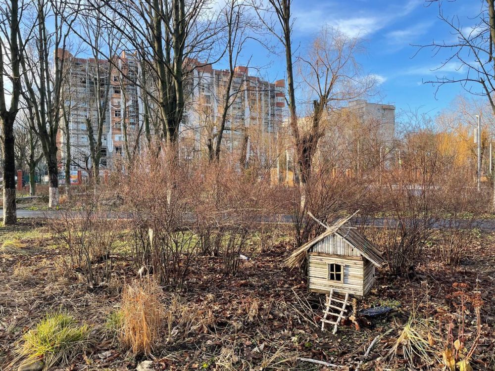 К слову о сказках, посмотрите на эту милую избушку на курьих ножках. Она установлена в сквере Мариупольского университета имени Куинджи. В ней, конечно, Баба Яга не живет. Она персонаж отрицательный, а все подобные покинули Мариуполь вместе с нашими врагами. Остались только добрые волшебники.