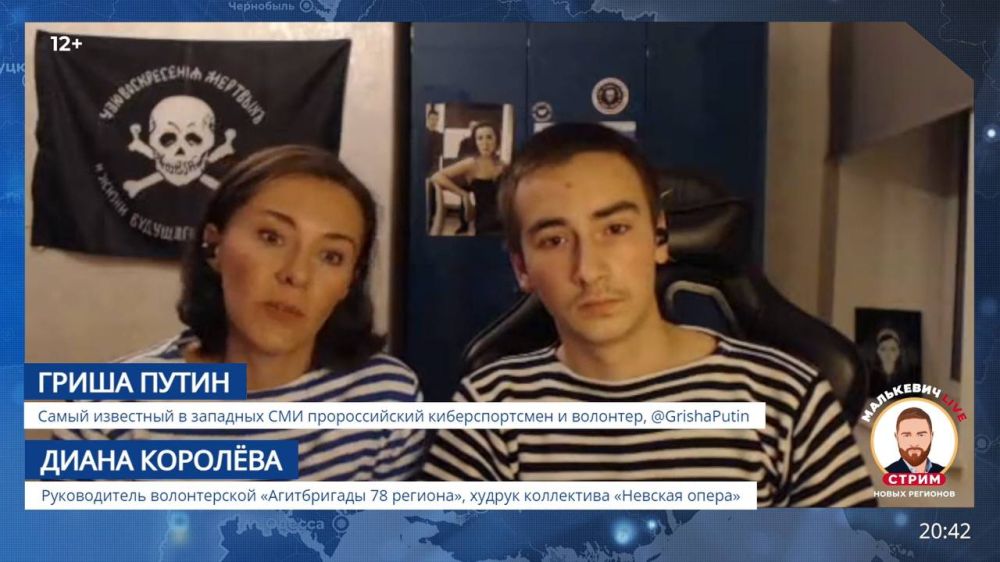 Гостями стрима Малькевич LIVE стали самый известный в западных СМИ пророссийский киберспортсмен и волонтер Гриша Путин и его мама, руководитель волонтерской «Агитбригады 78 региона», худрук коллектива «Невская опера» Диана Королёва.