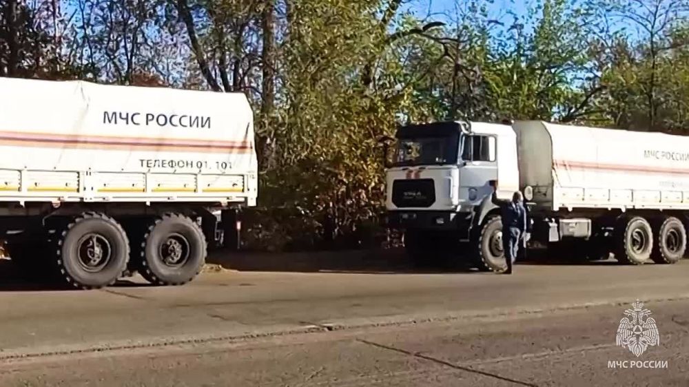 Автомобили гуманитарного конвоя МЧС России доставили 70 тонн гумпомощи жителям Рубежного, Северодонецка и Лисичанска, сообщили в главном управлении МЧС по Республике