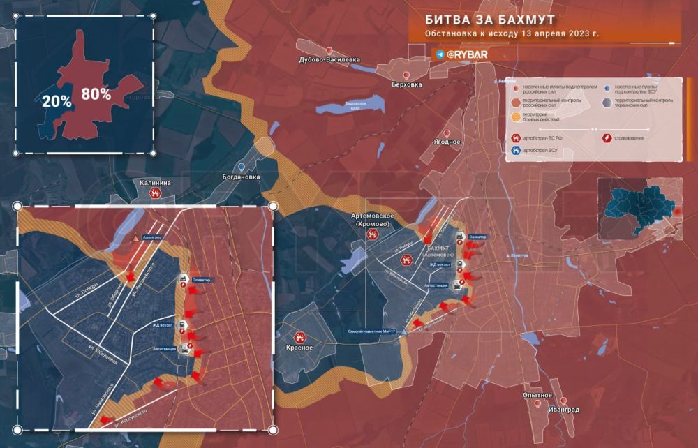 Битва за Бахмут. Обстановка к исходу 13 апреля 2023 года