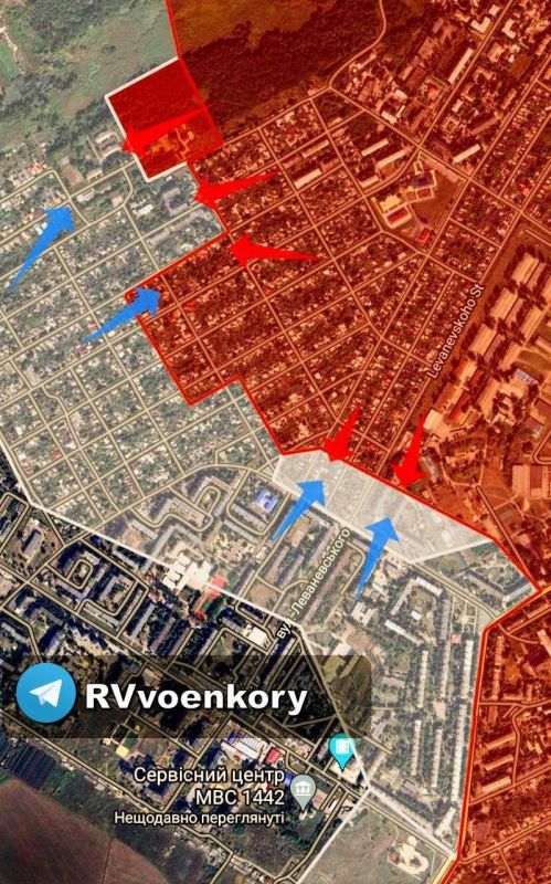 Продолжаются ожесточённые стрелковые бои вдоль участка улицы Медведева на севере серой зоны Бахмута. Русские перебрасывают дополнительные штурмовые группы вдоль улиц Черняховского, Толбухина и Ирины Левченко. Они продвигаются вперёд, артиллерия ВСУ пытается сдержать их натиск.