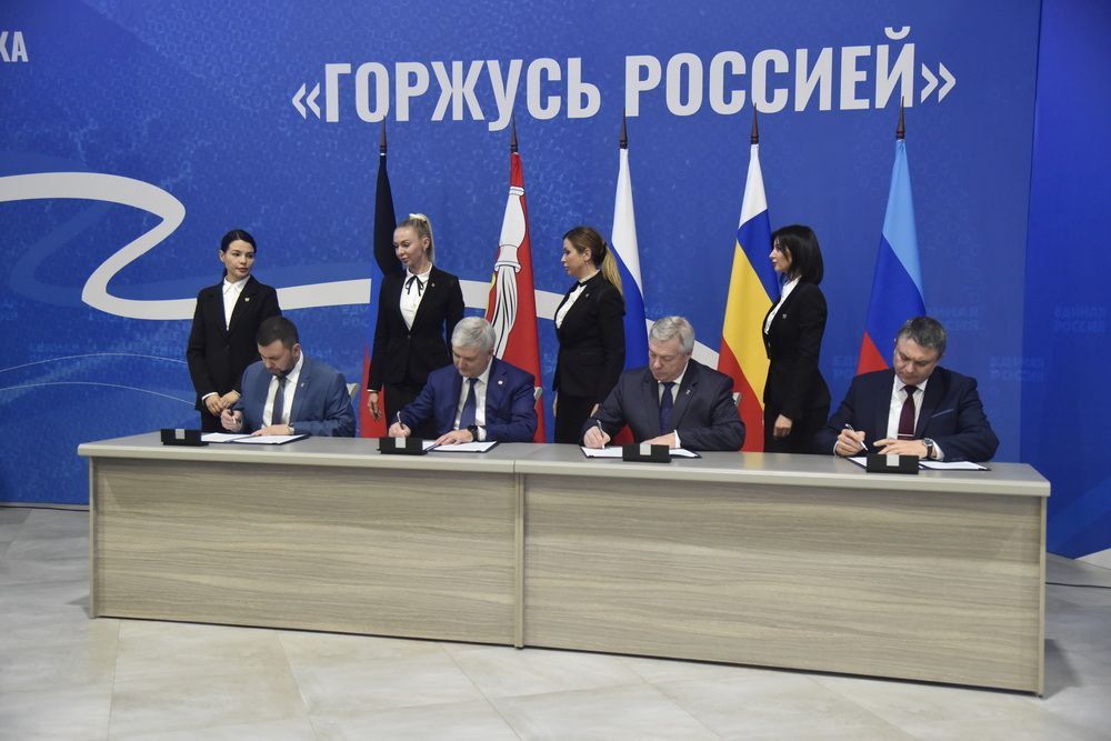 Соглашение о создании содружества «Донбасс» в составе Донецкой и Луганской Народных Республик, Ростовской и Воронежской областей подписали сегодня на Самбекских высотах совместно с Леонидом Пасечник