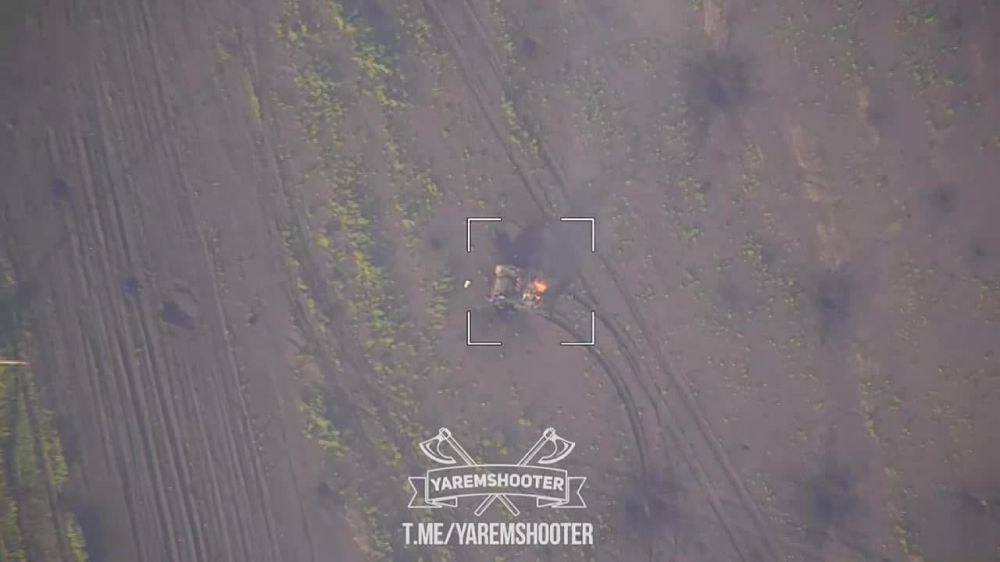 Детонация горящего танка ВСУ в полях к западу от Артемовска