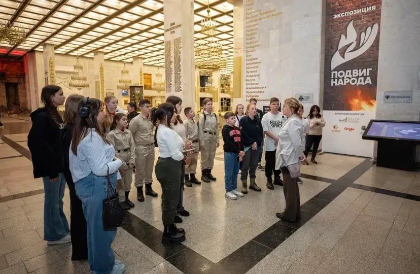 Юные россияне увидели иммерсивную экспозицию «Подвиг Народа» и вместе с гидом перенеслись в прошлое нашей страны.