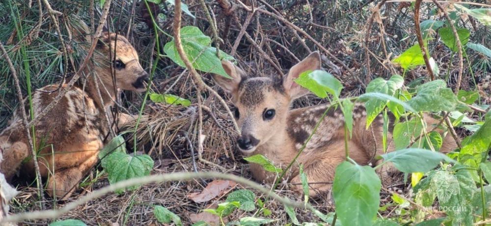 Во время тушения огнеборцы нашли беспомощных детенышей, которые от огня прятались под деревом. Малышей огнеборцы вынесли на руках.