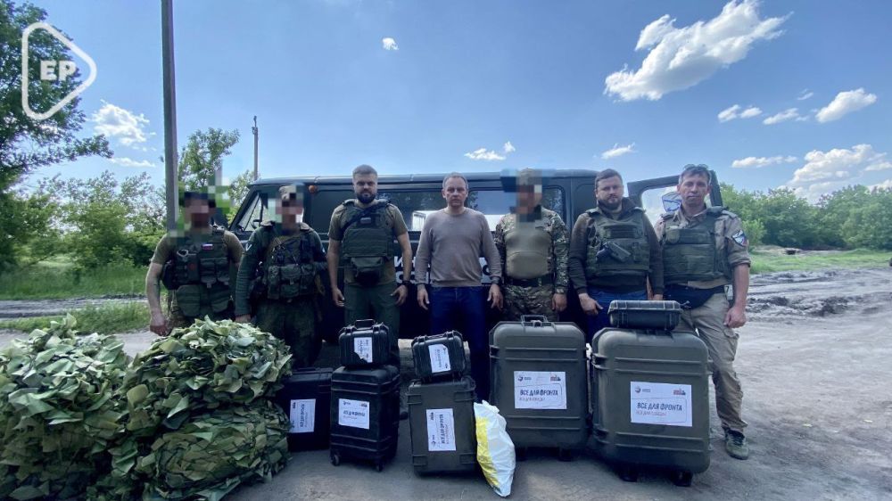 Военнослужащим 18-й гвардейской мотострелковой Инстербургской Краснознамённой, ордена Суворова дивизии масксети, инженерно-саперные принадлежности, коптеры привезли руководитель Центрального исполкома партии Александр Сидякин и депутат Госдумы Артем Туров.