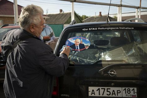 Она отметила, что горожане положительно относятся к акции, охотно клеят наклейки на свои автомобили и поздравляют Президента.