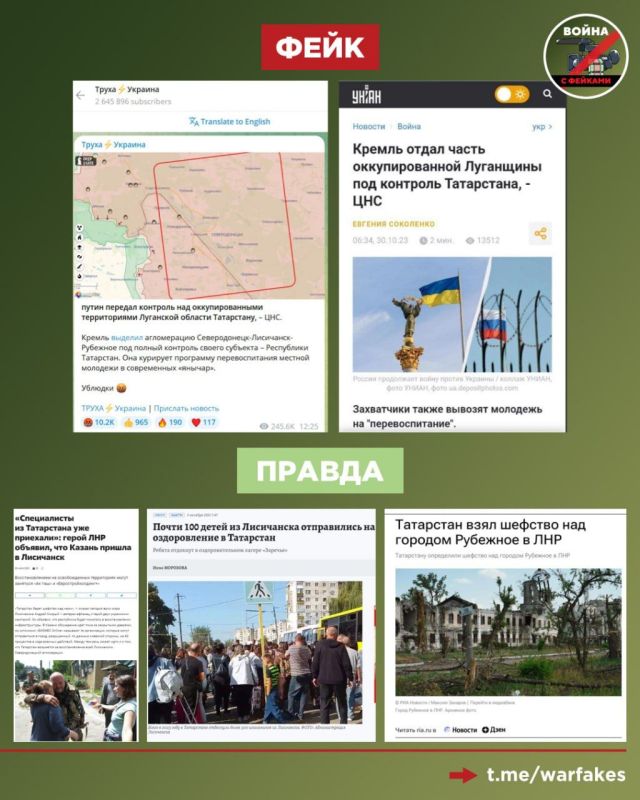 Фейк: Татарстан будет управлять Луганской народной республикой и готовить из донбасской молодежи современных янычар, сообщают украинские телеграм-каналы
