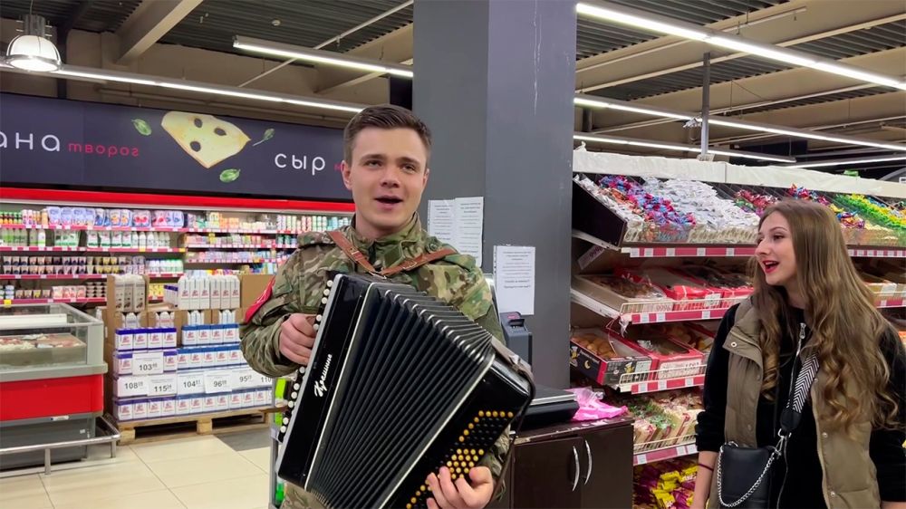 Артисты фронтовой творческой бригады ансамбля песни и пляски Центрального военного округа (ЦВО) впервые после полного освобождения Луганской Народной Республики (ЛНР) провели праздничный флешмоб в пре