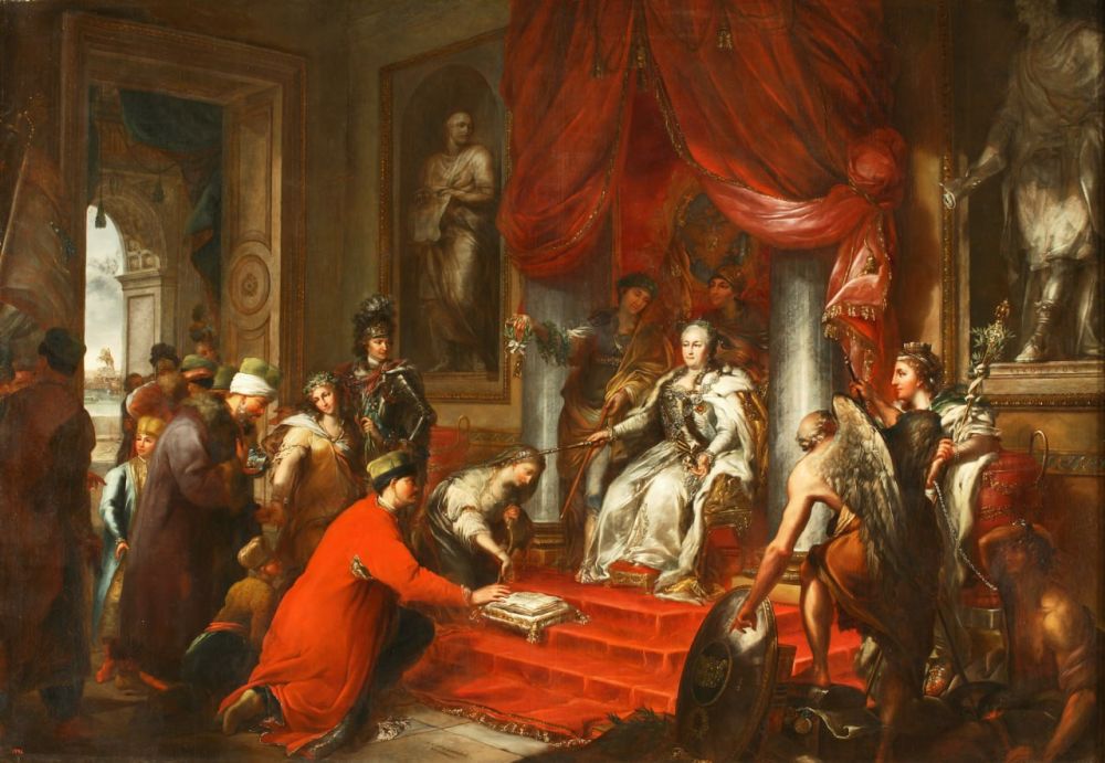 *А на фото — картина Андреаса Гюне, которая описывает важнейшее историческое событие — «Екатерина II дает законы Тавриде». О ней тоже подробно и очень интересно расскажут на выставке.