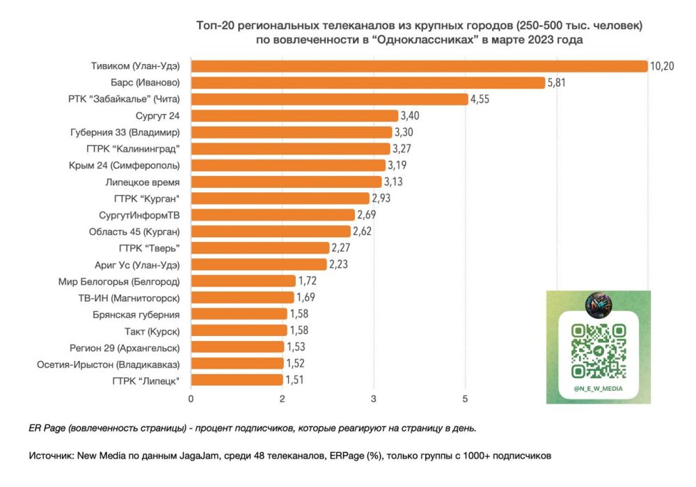 По информации источника, группа нашего телеканала оказалась на первом месте по количеству подписчиков (56 тыс.), на втором – по реакциям (23 тыс.).