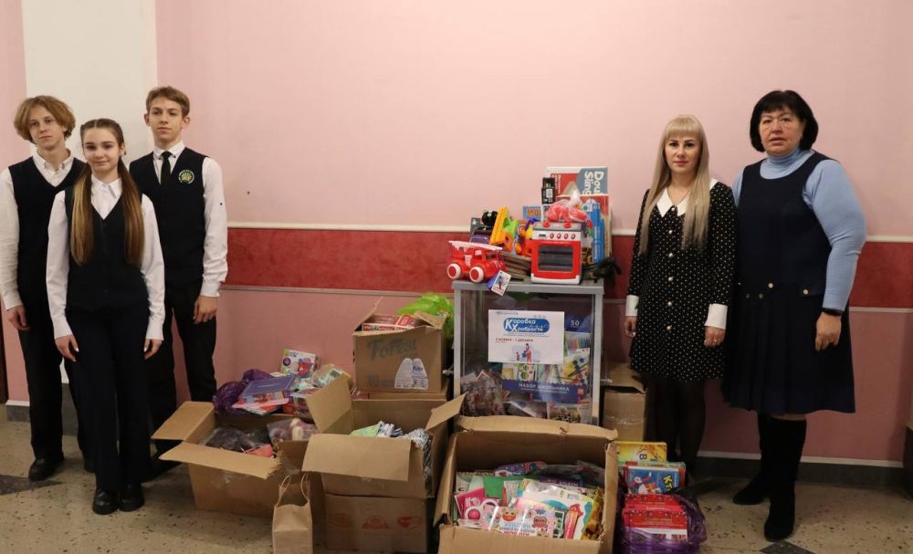 Уполномоченный по правам ребенка в Луганской Народной Республике Инна Швенк совместно с Депутатом Народного Совета Луганской Народной Республики, Директором ГУ ЛНР "Гимназия N30 имени Н.Т. Фесенко" Линой Вокаловой и учениками гимназии, присоединились к акции "Коробка храбрости", которая проходит в республике второй раз и инициированная партией "Единая Россия".