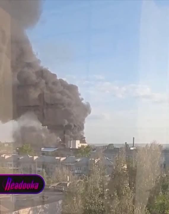 Кадры мощного пожара в центре Луганска после взрывовНа кадрах видно, как с места предположительного прилета поднимается черный столб дыма