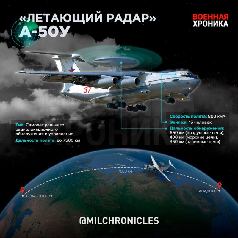 По данным Военной хроники, А-50У мог обнаружить восемь крылатых ракет и ложные цели на высоте ниже 1000 м на удалении более 200 км, за пределами видимости стационарного радара 92Н6. Использование «летающего радара» в этом случае было необходимо для повышения шансов на поражение цели. Радар подсвета С-400 способен обнаружить ракеты Storm Shadow на высоте 40 м с дистанции не более 35 км. А-50У дежурит на большой высоте и может обнаруживать такие цели, как Storm Shadow, на дальности 150—200 км.