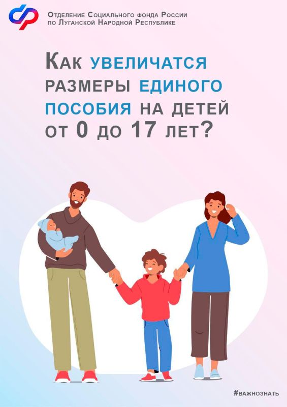Как увеличатся размеры единого пособия на детей от 0 до 17 лет?В 2024 году в связи с увеличением прожиточного минимума на душу населения в Луганской Народной Республике вырастет и размер единого пособ