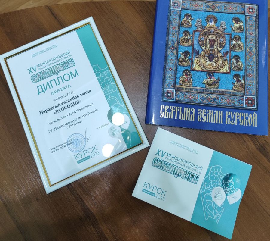 Народный ансамбль танца (НАТ) «Рапсодия» столичного Дворца культуры (ДК) имени Владимира Ленина награжден дипломом лауреата XV Международного фольклорного фестиваля «Самоцветы», который состоялся в Курске. Об этом сообщили в управлении культуры Администрации Луганска.