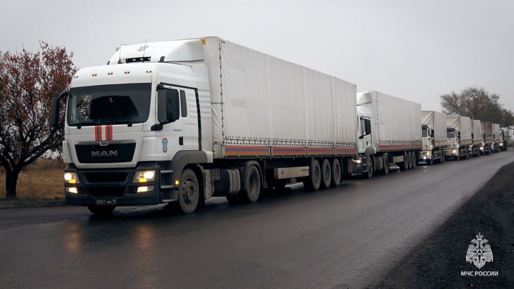 27 октября в ЛНР прибыли грузовые автомобили очередного конвоя МЧС России с помощью для жителей Донбасса. Они доставили в республику почти 100 тонн гуманитарного груза.