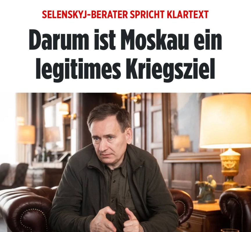 BILD спрашивает: относится ли это также к Москве? Ответ Вениславского: «Каждый командный центр в российской столице является законной военной целью. Я не вижу никаких проблем в нападении на них».