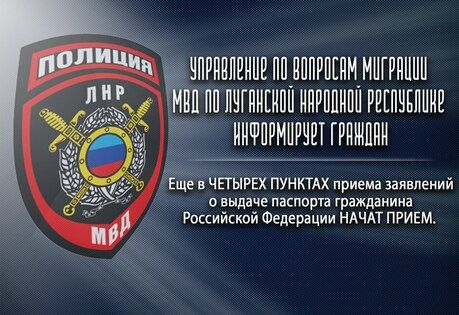 "Сотрудники управления по вопросам миграции МВД по Луганской Народной Республике начали прием заявлений о выдаче паспорта гражданина Российской Федерации еще в четырех пунктах", - говорится в сообщении.
