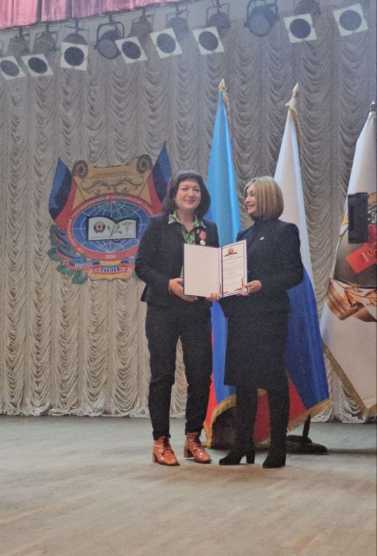Далее Указом Главы Луганской Народной Республики за высокий профессионализм, многолетний добросовестный труд, преданность своему делу, значительный личный вклад в совершенствование лечебно-профилактической работы и развитие системы здравоохранения Луганской Народной Республики министр наградила: