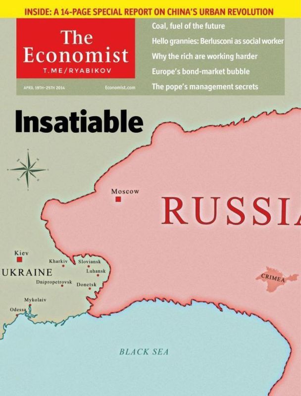Но англосаксонском у The Economist уже очевидно, что страшный русский медведь решил откусить кусок Украины и причем - именно на Донбассе. Чего, кстати, медведь делать не стал и, судя по всему, даже не собирался.