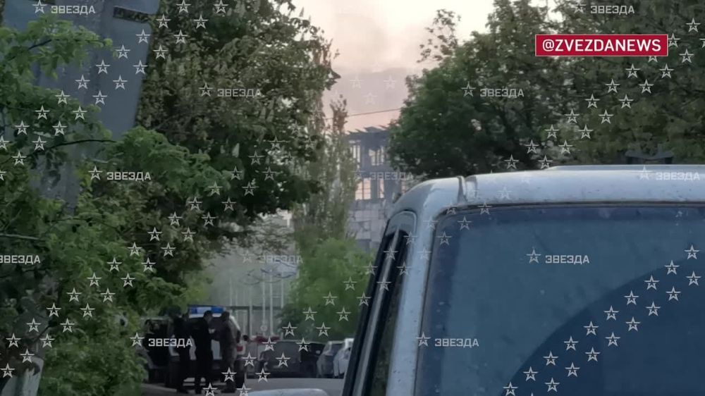 Новые кадры с места взрывов и пожара на предприятии в Луганске от нашего корреспондентаОт здания поднимается дым, на месте находятся сотрудники экстренных служб