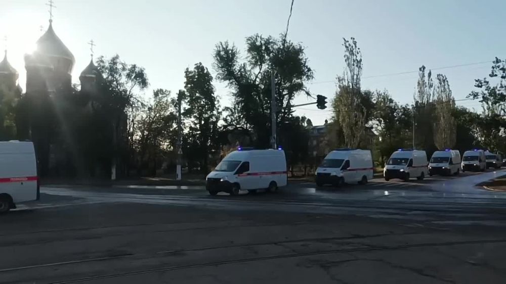 Одиннадцать новых автомобилей скорой медицинской помощи ранним утром прибыли в Луганск в рамках реализации мероприятий П