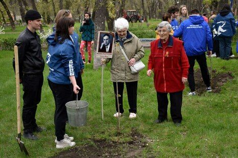 Акция "Сад героев" в честь участников Великой Отечественной войны и павших героев специальной военной операции состоялась в столичном парке Победы в рамках реализации партийного проекта &quo