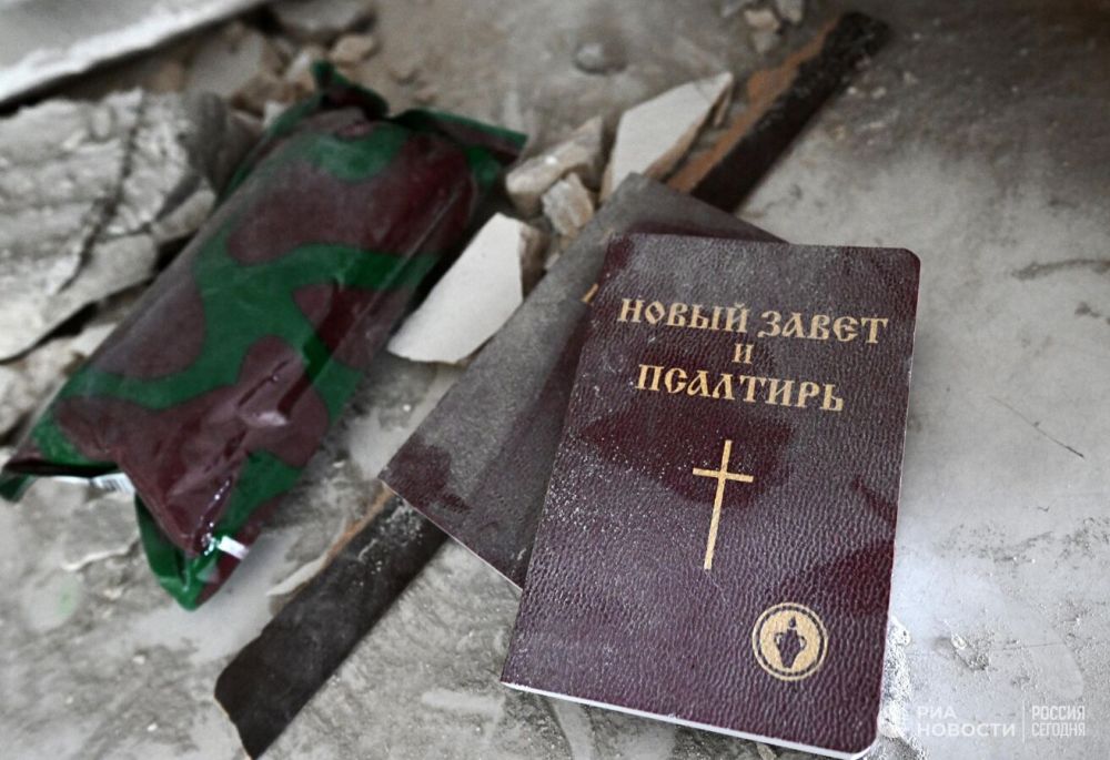 Новый Завет и Псалтирь в здании районной больницы в Новоайдаре в ЛНР, по которой украинские военные нанесли удар из РСЗО HIMARS.